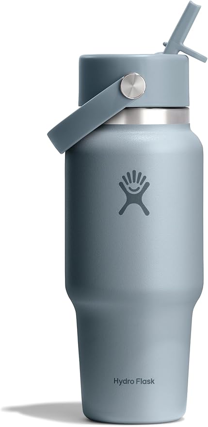 Hydro Flask Travel Water Bottle - Insulated Stainless Steel - Wide Straw Lid, Non Spill, Leakproof in 24 Oz Shale Gray