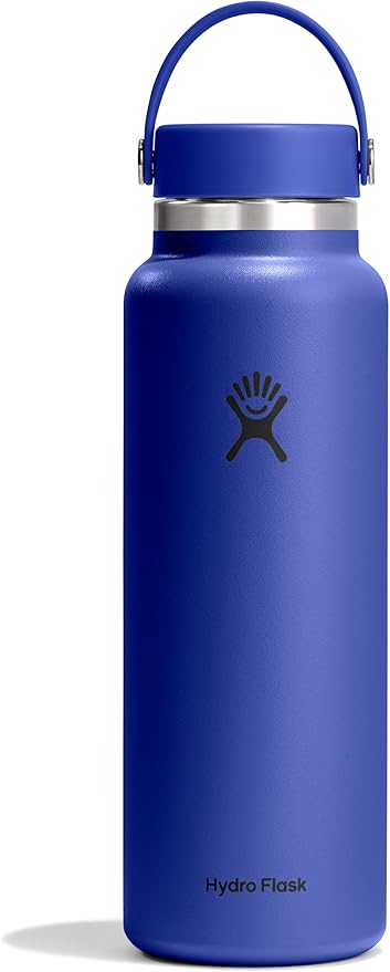 Hydro Flask Water Bottle - Insulated Stainless Steel - Wide Mouth Flex Lid, Non Spill, Leakproof and Refillable in 40 Oz Capri Blue