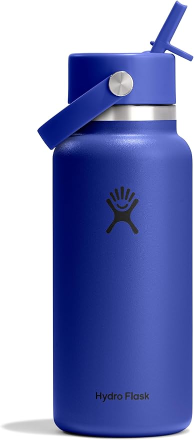 - 32 OZ CAPRI BLUE BOTTLE: Flip it and sip it with the Hydro Flask Wide Mouth insulated water bottle with closeable straw cap. With a comfortable, flexible handle, the leakproof straw cap is easy to open and close. Double-wall insulation keeps drinks cold up to 24 hours.