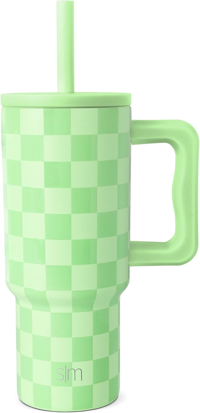 Simple Modern Kids 24 oz Tumbler with Handle and Silicone Straw Lid | Spill Proof and Leak Resistant | Reusable Stainless Steel Bottle | Gift for Kids Boys Girls | Trek Collection | Lime Checkmate
